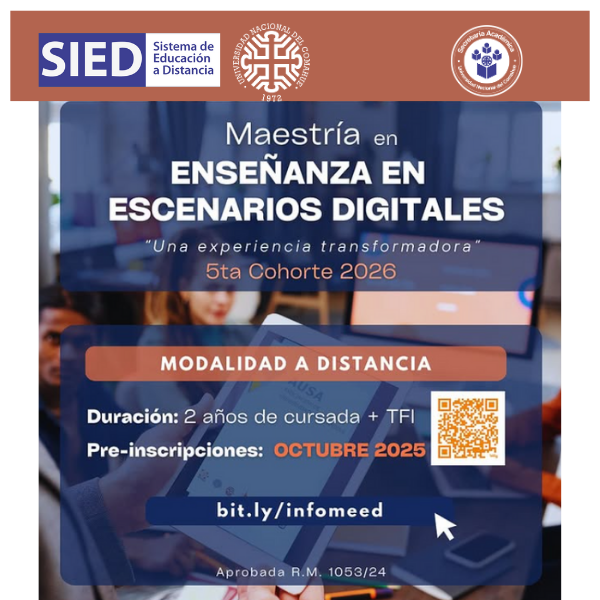 A partir del mes de octubre inicia la preinscripción a la 5ta cohorte de Maestría en Enseñanza en Escenarios Digitales (MEED), una formación profesionalizante, con modalidad a distancia, que te prepara para integrar las tecnologías emergentes en los procesos educativos.